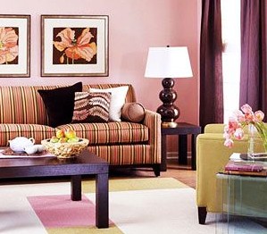 粉色給人的感覺(jué)是太**,不容易搭配。其實(shí)深棕色的家具可以很好的融入其中,不過(guò)家具的線條一定要簡(jiǎn)潔,否則會(huì)讓客廳顯得太過(guò)于復(fù)雜。