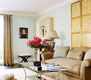 金碧輝煌的感覺(jué)不少人都喜歡,但是太多的金屬色反而會(huì)影響房間感覺(jué)。主體色彩選用單色,而在家具的周邊使用金色鑲邊,以及具有金屬色的窗簾,都能使客廳豪華而具有魅力。