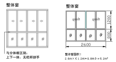 整體窗面積=平移窗寬度×(平移窗實(shí)際高度+下固定窗實(shí)際高度)