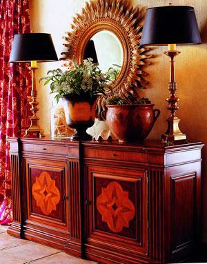 并不是簡(jiǎn)單的對(duì)傳統(tǒng)文化的復(fù)古,而是在現(xiàn)代裝修風(fēng)格中融入古典元素,尤其流行將傳統(tǒng)家具原始功能進(jìn)行演變,比如把雙人床榻用來做沙發(fā)等;有的家具看似是普通的現(xiàn)代風(fēng)格,但由于在板材上包裹了紋理畢現(xiàn)的皮革,而彌漫著雍容華貴的古典氣息。局部夸張的造型、仿鱷魚皮等頹廢奢華的材質(zhì)和濃烈的純金屬色以及對(duì)抽象化幾何線條裝飾的偏愛,都讓這種’不倫’的古典風(fēng)潮再度溫暖我們的居室。