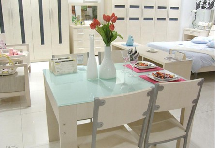 如果房屋面積很大,有獨立的餐廳,則可選擇富于厚重感覺的餐桌以和空間相配;如果餐廳面積有限,而就餐人數(shù)并不確定,可能節(jié)假日就餐人員會增加,則可選擇目前市場上最常見的款式——伸縮式餐桌,即中間有活動板,平時不用時收在桌子中間或拿下來,不要為了一年僅三四次的聚會而買一個特大號的餐桌。