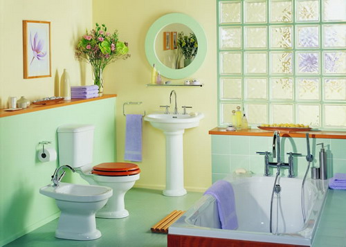 塑料是衛(wèi)生間里最受歡迎的材料,色彩艷麗且不容易受到潮濕空氣的影響,清潔方便。這一組綠色的器皿包括紙巾盒、肥皂盒、廢物盒,還有一個裝雜物的小托盤。在不同風格的衛(wèi)生間搭配不同的色彩,也是一種流行。