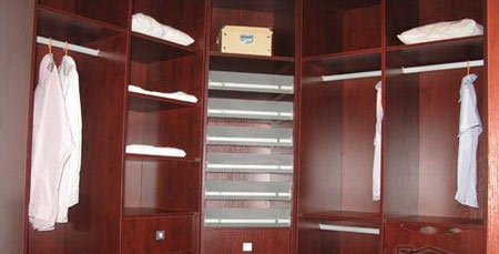 2、看板材貼面。有些衣柜,表面看還不錯,其實,用指甲輕輕一劃,就能劃出明顯的劃痕。這些衣柜選用的是市場上低價衣柜經常使用的表面貼保麗紙、華麗紙板材,耐磨性較差。專業(yè)廠家使用的則是浸漆厚度較厚且經高溫高壓處理的環(huán)保三聚氰胺貼面板,表面強度高,耐磨耐劃傷。