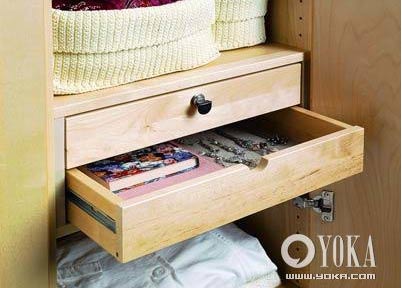 對(duì)柔軟臃腫的針織衣物,由于很占空間,應(yīng)該引起我們的注意。帶有很多抽屜的地柜,一方面可以收納這類衣物,同時(shí)也能用來(lái)陳設(shè)擺件或做凳子。