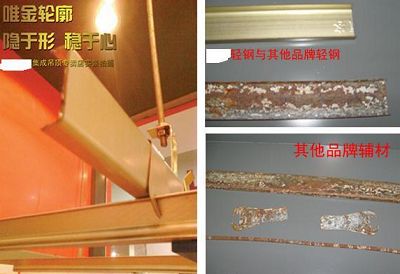 再來(lái)有個(gè)也很重要的,就是隱藏在扣板上面的龍骨 。龍骨從木質(zhì)龍骨發(fā)展到普通鋼材的,到現(xiàn)在一線品牌集成吊頂所使用的加厚鍍鋅金屬烤漆的龍骨,(一般品牌的集成吊頂都不會(huì)主動(dòng)介紹這個(gè)部分,另外有的品牌對(duì)這個(gè)部分直接送,大家這個(gè)時(shí)候就要主動(dòng)看樣品了,然后和一線品牌的龍骨進(jìn)行對(duì)比)