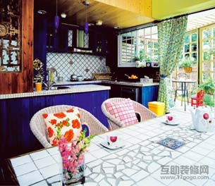 手法2、不規(guī)則磁磚拼貼出藝術(shù)風(fēng)格廚房