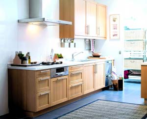 專家指出,一般家庭的廚房可以被劃分為三個主要工作區(qū)域——烹飪區(qū)(烤箱、爐灶等)、洗滌區(qū)(水槽、洗碗機(jī)、消毒柜等)和儲物區(qū)(冰箱、冰柜等)。想要方便、有效地設(shè)計廚房,這些區(qū)域是相當(dāng)重要的。如果您不想在這三個區(qū)域里跑來跑去超過3米的距離,一個自然的工作流程十分必要。下面就為您介紹5款簡單實用的廚房設(shè)計類型。