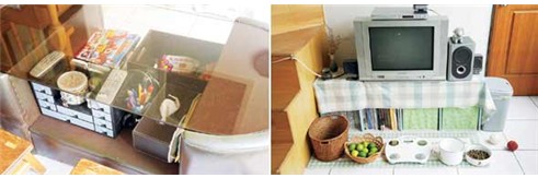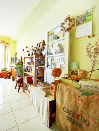 2.客廳養(yǎng)了兩缸小魚,把空心磚疊起來放在墻邊當架子,中間的空格還可以收納物品。