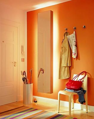 除了鞋柜外,鏡子是玄關(guān)的常見物。如果玄關(guān)空間較小,一般的設(shè)計思路是在側(cè)對門的墻上安置幾幅入墻鏡,加深視野以擴展空間。有時,為了加強對落地鏡的裝飾,在鏡前放一個小幾,軒一盆綠色植物,便可將自然界的勃勃生機引入室內(nèi)。鏡子在玄關(guān)中的用外很大,它可以讓人們在出門前或進門前檢查一下儀容。但是注意不要正對門口,夜間進門容易產(chǎn)生幻覺。