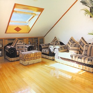 閣樓的布置,應(yīng)以低矮、柔軟、色彩對(duì)比強(qiáng)烈等特征為原則,可用諸如靠墊、布藝飾品點(diǎn)綴有限的空間,這與閣樓功能區(qū)定位有著非常大的關(guān)系;書房就不能太“懶”,休閑視聽室不能太“板”,兒童間更不能“危險(xiǎn)”,此外,在閣樓裝修的后期配飾中,要用顏色來豐富空間。比如,視聽室中的靠墊要大,顏色與周圍對(duì)比要強(qiáng)烈,閣樓對(duì)中國(guó)人來說,本來就是一個(gè)很現(xiàn)代的地方,從這點(diǎn)出發(fā),閣樓的布置應(yīng)該時(shí)尚些。