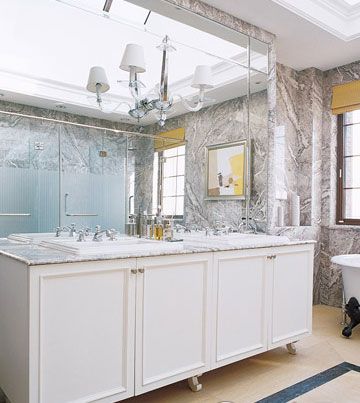 用天然大理石作為浴室柜的臺(tái)面,要盡量避免唇膏等有顏色的化妝品涂到臺(tái)面上,這種有油性的顏色會(huì)滲透到石材里。