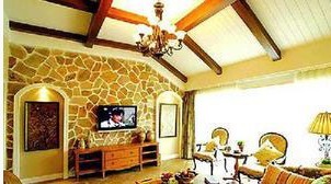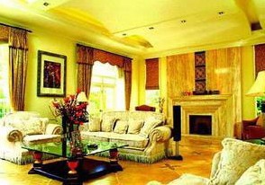 本案例中力求在簡(jiǎn)約化的歐式氣息中,彰顯主人的文化追求和藝術(shù)品位。豐富的光影使室內(nèi)的線條錯(cuò)落有序。木質(zhì)的電視墻裝飾別具一格,沙發(fā)的一側(cè)是裝飾壁爐,米色大理石的地面以少許深色圖案作為點(diǎn)綴,鮮亮的色彩對(duì)比使整個(gè)空間顯得高貴、生動(dòng)。