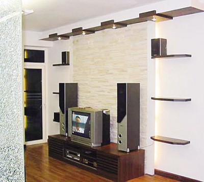 “我的電視背景墻是由壁紙和裝飾板組成的,正中間放液晶電視的部分是由波浪形裝飾板做成的。當(dāng)時(shí)我那朋友將手伸進(jìn)裝飾板預(yù)留的一個(gè)洞里,上下摸了摸,然后告訴我這個(gè)背景墻可能不行,要重新做。他的理由是里面沒(méi)有放大芯板,僅靠裝飾板根本不能承受什么重量,到時(shí)候電視掛不上?!辈滔壬f(shuō)。