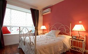 臥室中既然以床為中心了,其它飾物一般就應(yīng)有“退居二線”的襯托意識(shí)。如窗簾,面積較大,太艷、太豪華了,就會(huì)與床飾形成兩個(gè)“中心”,以至讓人眼花繚亂。故窗簾應(yīng)選用相應(yīng)一點(diǎn)兒的色彩、圖案、面料,像一個(gè)“仆人”站在床邊。