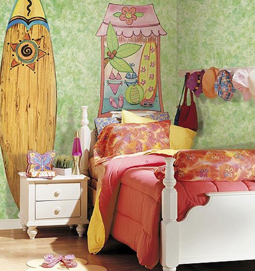 裝飾墻面時,切忌用那些猙獰怪誕的形象和陰暗的色調(diào),因為這些飾物會使幼小的孩子產(chǎn)生可怕的聯(lián)想。