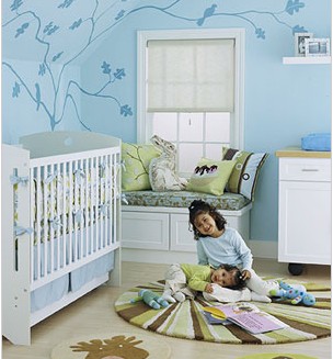 強(qiáng)化地板或免除跌打受傷的軟木地板,也可以選擇避免接觸污染的抗菌地板。兒童間的地毯要經(jīng)常清洗,以免造成螨蟲或者細(xì)菌污染。