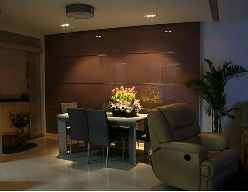 首先要確定餐區(qū)的范圍。一般家庭沒有過大的空間,通常采用開放式的格局,一方面可使餐區(qū)看來寬敞,其次還可豐富室內(nèi)的景觀。為更好地塑造餐廳的聚攏感,可利用天花板與地板的變化加以界定等方法,也就是用虛擬空間的設(shè)計(jì)手法表現(xiàn)視覺空間的完整性。設(shè)計(jì)巧妙的天花板也有很好的籠罩感,配合燈光的布置,更增添了空間的聚合性。一般來講,圍聚性的設(shè)計(jì)在人們心理上有暗示的象征含義。