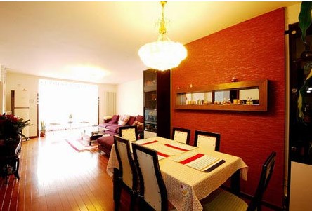 餐廳一般的色彩搭配都要和客廳等空間協(xié)調(diào)一致,因?yàn)槟壳皝碇v,我國的大多數(shù)的建筑空間,餐廳與客廳都是相通的,所以從視覺的連貫上講,要注意這些空間的色彩統(tǒng)一。當(dāng)然,也可以在一面或兩面餐廳的墻面,采用橘紅等暖色,有進(jìn)一步強(qiáng)調(diào)餐廳功能的作用。如果餐廳是單獨(dú)的封閉空間,那更可以大膽地采用黃、紅等色系了。通常來講,紅色和黃色給人的感覺是有利于提高食欲。