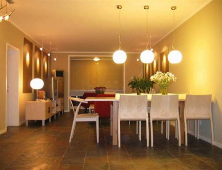 燈光在餐廳的設(shè)中計(jì)占據(jù)極重要的一環(huán),在造型上以垂釣式的吊燈為主,輔以射燈或筒燈等,營造一方層次分明的“光彩”空間。日光燈在照明上雖然充分,但慘白青灰的色澤,不禁使人顏面失常也會(huì)引起對(duì)冷調(diào)環(huán)境的倦怠感,所以日光燈是餐廳不宜使用的燈光。