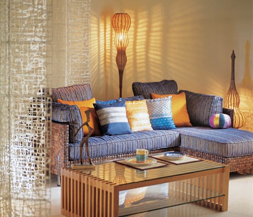 想要營造粉紅浪漫情調(diào)的沙發(fā)區(qū),沙發(fā)的選擇當然要擬定一個素雅的色調(diào),然后添加粉紅色調(diào)的裝飾物件,理清思路是不是就很容易呢。粉紅色吊燈、粉紫色地毯、粉色果盤、紫色靠墊、紅色壁燈……千萬不要傻乎乎的就吃定了一種粉色哦。
