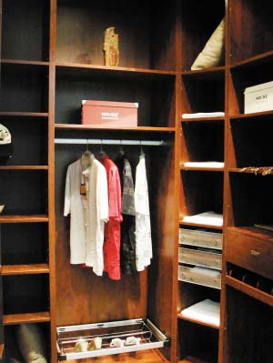 不同的家具,表面用料是有區(qū)別的。如桌、椅、柜的腿子,要求用硬雜木,比較結(jié)實(shí),能承重,而內(nèi)部用料則可用其它材料;大衣柜腿的厚度要求達(dá)到2.5厘米,太厚就顯得笨拙,薄了容易彎曲變形;廚房、衛(wèi)生間的柜子不能用纖維板做,而應(yīng)該用三合板,因?yàn)槔w維板遇水會(huì)膨脹損壞;餐桌則應(yīng)耐水洗。