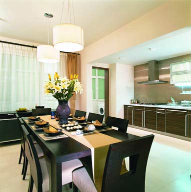 家庭的能量部分來自於進餐的食物。由於餐廳是進食的區(qū)域,所以跟家庭的財富大有關系。餐廳應采用亮色的裝潢和明亮的照明,以增加火行的能量,蓄積陽氣。在此處放置植物更可增強陽氣和財富。 上海裝潢網