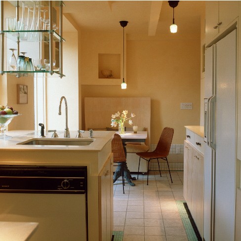 以此類推,如果在家就餐不多,餐廳面積也可以壓縮。同時(shí)把多余的隔墻去掉,采用開放式大空間,中間靠家具、屏風(fēng)分出層次。香港90平方米以下的房子能夠設(shè)計(jì)成三房兩廳一廚二衛(wèi),就是采用這樣的空間分割法。