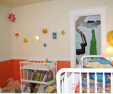 墻面:嬰兒房的裝飾裝修,墻面以環(huán)保型織物墻紙作裝飾比較好,既不怕圖畫(huà),又易于清洗。