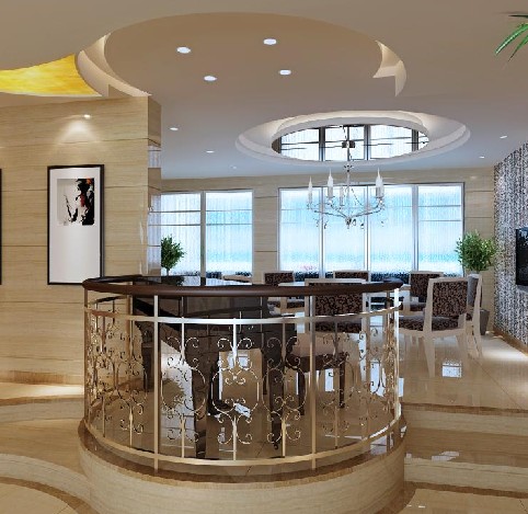 一般除餐桌、餐椅和燈具外,可以根據(jù)主人的愛好和空間大小搭配酒柜、展示柜、酒車等,再配以適當(dāng)?shù)木G色植物和裝飾畫,墻面的色調(diào)盡量用淡暖色,以增進(jìn)食欲。燈具選擇可以不受空間高低的限制,選擇主人喜歡的吊燈。