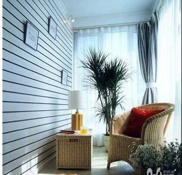 除綠色植物、花卉等能起到裝飾陽(yáng)臺(tái)的作用外,陽(yáng)臺(tái)側(cè)墻面、地面也是裝飾美化的重點(diǎn)。例如,可以整齊有致地在側(cè)墻上掛置富有裝飾韻味的陶瓷壁掛、掛盤(pán)等裝飾品,有的隔墻還可做成博古架的形式,以供放置裝飾器物。在光滑素雅的墻面上,也可掛置用柴、草、葦、棕、麻等材料做成的編織物。陽(yáng)臺(tái)的地面可利用舊地毯或其他材料鋪飾,以增添行走時(shí)的舒適感。