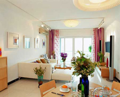利用裝修手法區(qū)分:各個(gè)功能性分區(qū)都有它的主要功能,您可以利用獨(dú)特的裝修手法來(lái)區(qū)分它們。這種區(qū)分主要在吊頂上,如在整個(gè)大廳中可以做兩個(gè)局部的吊頂,在會(huì)客區(qū)上方安置一個(gè)吊頂,在餐廳上方再安排一個(gè)吊頂,這樣就自然形成了兩個(gè)區(qū)域。另外,還可以利用墻壁裝飾來(lái)區(qū)分空間。如在會(huì)客區(qū)中,視聽(tīng)設(shè)備后的“文化石背景墻”就與餐廳的“固定式餐具柜”形成鮮明對(duì)比。
