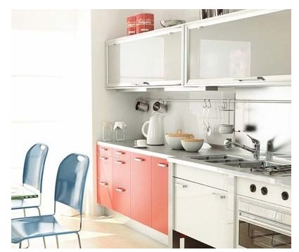 對(duì)于櫥柜材料的選擇,可以使櫥柜展現(xiàn)不同的風(fēng)格,這主要是根據(jù)個(gè)人愛好及生活習(xí)慣而定。在廚房設(shè)計(jì)中采用金屬與玻璃組合或以強(qiáng)烈的色彩對(duì)比,不僅可以使廚房顯得時(shí)尚,還可以展現(xiàn)自我個(gè)性。而選擇木紋系列則屬于鄉(xiāng)村田園風(fēng)格,充分展現(xiàn)休閑性,最能滿足珍視家庭溫馨感覺的人士。