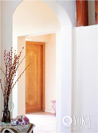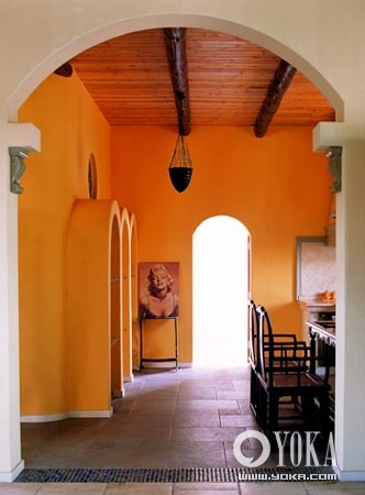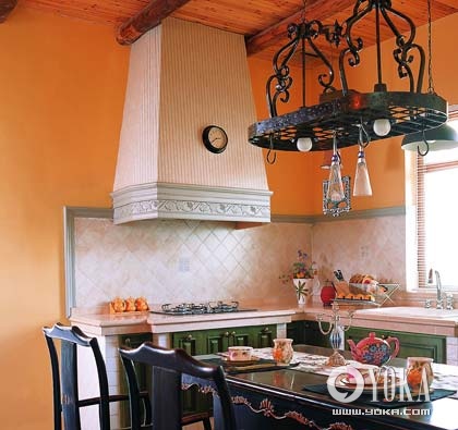 鄉(xiāng)村風(fēng)格的色彩多以自然色調(diào)為主,特別是墻面色彩的選擇,自然、懷舊、散發(fā)著質(zhì)樸氣息。整棟房子的墻用的是溫馨的淡黃色,配上淡綠色的手刷漆>木吊頂,讓空間充滿了田園的韻味。黃色和綠色的經(jīng)典搭配在餐廳、臥室都能找到。這兩種顏色也是老薛最喜歡的顏色,“看著就舒服”,老薛指指身上的T恤,笑道:“綠色是最自然、健康的顏色。” 上海裝潢網(wǎng)