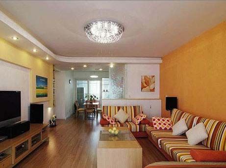 因?yàn)橹徽趽趿瞬糠株?yáng)光,故此在柱壁上應(yīng)該裝置燈光來(lái)作輔助照明,則既可解決客廳中光線(xiàn)不勻的弊疾,而且又可增加美觀(guān)。