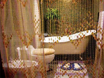 精裝房里的衛(wèi)生間一般都已裝修完畢,業(yè)主發(fā)揮創(chuàng)造性的空間很小。但像“門”等部位可以多做文章修飾。比如,用珠簾和輕柔的薄紗取代門。在展現(xiàn)柔美女性風格的同時,讓原來空間不再有擁擠逼仄之感。 上海裝潢網