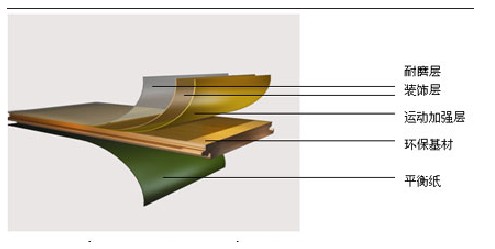強化復合地板(浸漬紙層壓木質(zhì)地板)其結(jié)構(gòu):強化復合地板由四層結(jié)構(gòu)組成。