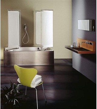 衛(wèi)生間的設計基本上以方便、安全、易于清洗及美觀得體為主。由于衛(wèi)生間的水氣很重,內部裝潢用料必須以防水材料為主。浴室的墻壁和天花板所占面積最大,所以應選擇既防水又抗腐蝕和防霉的材料來確保室內衛(wèi)生,瓷磚、強化板和具防水功能是塑料壁紙都能達到這些要求。天然石料如大理石則具有特殊的質感,但可異在狹小的衛(wèi)生間內發(fā)揮不了效果。