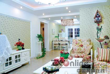 大面積地使用壁紙有一個(gè)問題,那就是很容易顯得雜亂或是沉悶。所以設(shè)計(jì)師特意設(shè)計(jì)了許多大面積的留白。例如,電視背景墻四周的白框。這棟房子的主人沒有把時(shí)下流行的等離子或是液晶電視掛在客廳墻上,非關(guān)經(jīng)濟(jì)因素,只是因?yàn)橹魅伺c設(shè)計(jì)師一致認(rèn)為,太具現(xiàn)代感的液晶電視與自然的歐式鄉(xiāng)村風(fēng)格太不搭調(diào)了。就這樣弄一臺老式顯像管電視擺在電視柜上,再在上面蓋上女主人精心挑選的白色電視布,很有一種歐洲文藝電影的味道。
