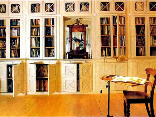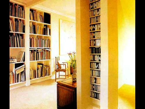 喜歡讀書的人,大多都有理性的一面,講究秩序。面對眾多的藏書,如何做到藏而不亂呢?可以將書柜分成很多格子,將所有藏書進(jìn)行分門別類,然后各歸其位,這樣要看的時候,依據(jù)分類的秩序,就省去了到處找書的麻煩。藏書太多,不妨將書柜做得高一些,取時借助一把小扶梯。