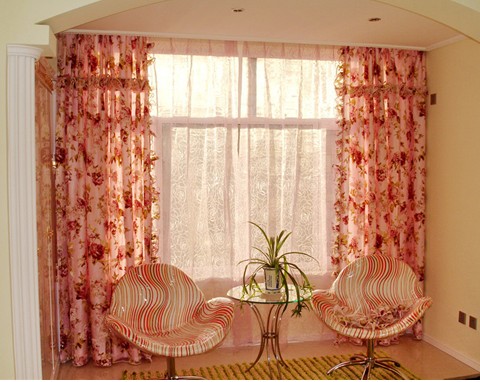 第四種是分開的單簾,與普通簾不同之處是在簾頭的外側(cè)多收碎褶,簾頭內(nèi)側(cè)裝飾花球,收攏時(shí),扎掛在花球上,褶幔間柔情無限。