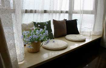 想被陽光照醒或享受星光的人士不妨試試。如果飄窗頗大,有兩三米長(zhǎng),一米寬的話,就可以把飄窗設(shè)計(jì)成一張小小的單人床!保留原有的大理石臺(tái)面,在采光玻璃(大多飄窗是三面采光)上掛上羅馬簾或普通垂簾,再在飄窗與臥室之間多加一道窗簾。不用的時(shí)候整個(gè)窗戶造型是浪漫的宮廷式垂簾,輕輕拉開,就是睡美人之床了。
