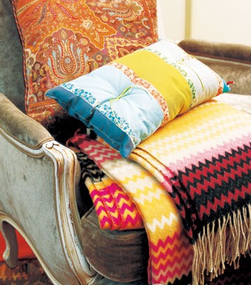 靠包和毛毯可以有很多種不同的搭配,天空藍(lán)與湖水綠,條紋與印花相互混搭都是不錯的選擇。