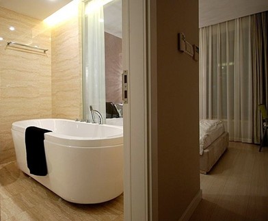 客房重點(diǎn)在于簡(jiǎn)潔方便、如小寫字臺(tái)、小衣柜、壁燈、臺(tái)燈、電話等等都應(yīng)備齊,以顯示出主人平等待客的文明和禮貌。