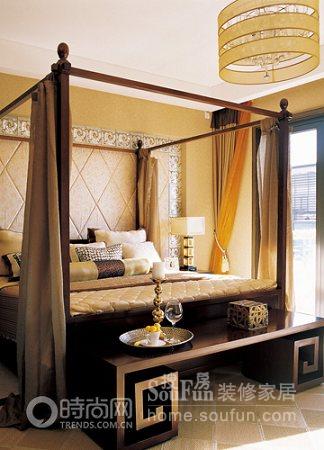 6.由中式文化發(fā)展而來的寬大的木質(zhì)腳踏,厚重大氣,色彩沉穩(wěn),與床的配合不但不顯得生硬,反而韻味十足?!?FONT face=Verdana>