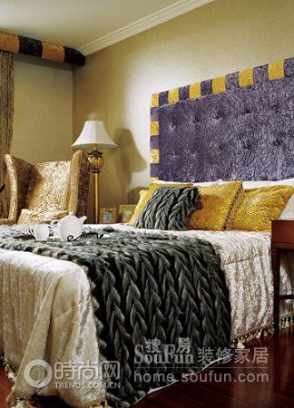 1.金色是對紫色的最好襯托,強化了臥室的華貴感和神秘感。